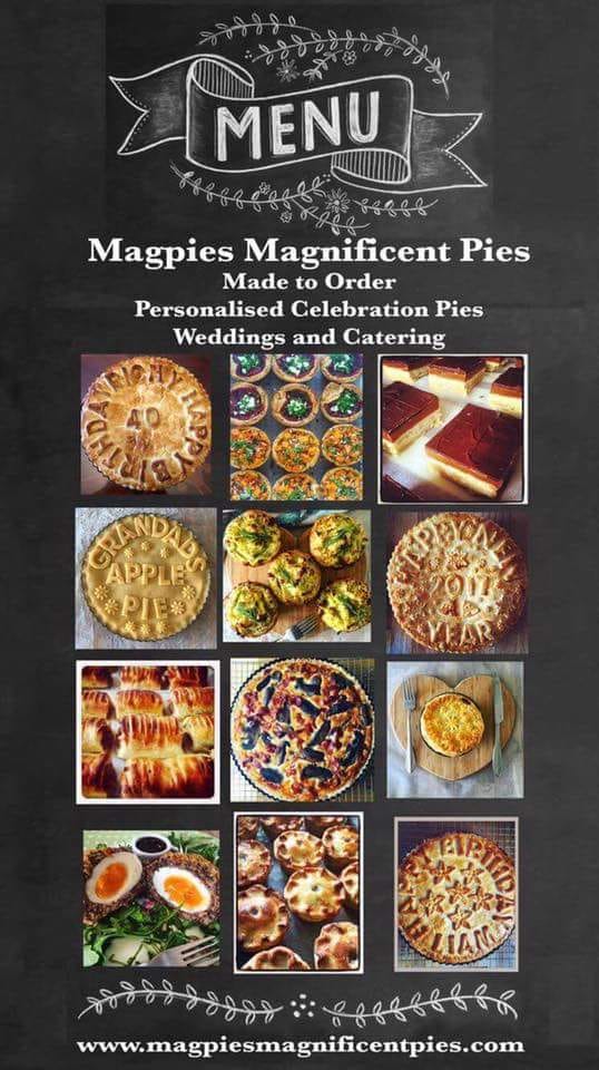Magpies Magnificent Pies bake fresh tasty Pies, Tarts, Quiches, Sausage Rolls and Scotch Eggs.
